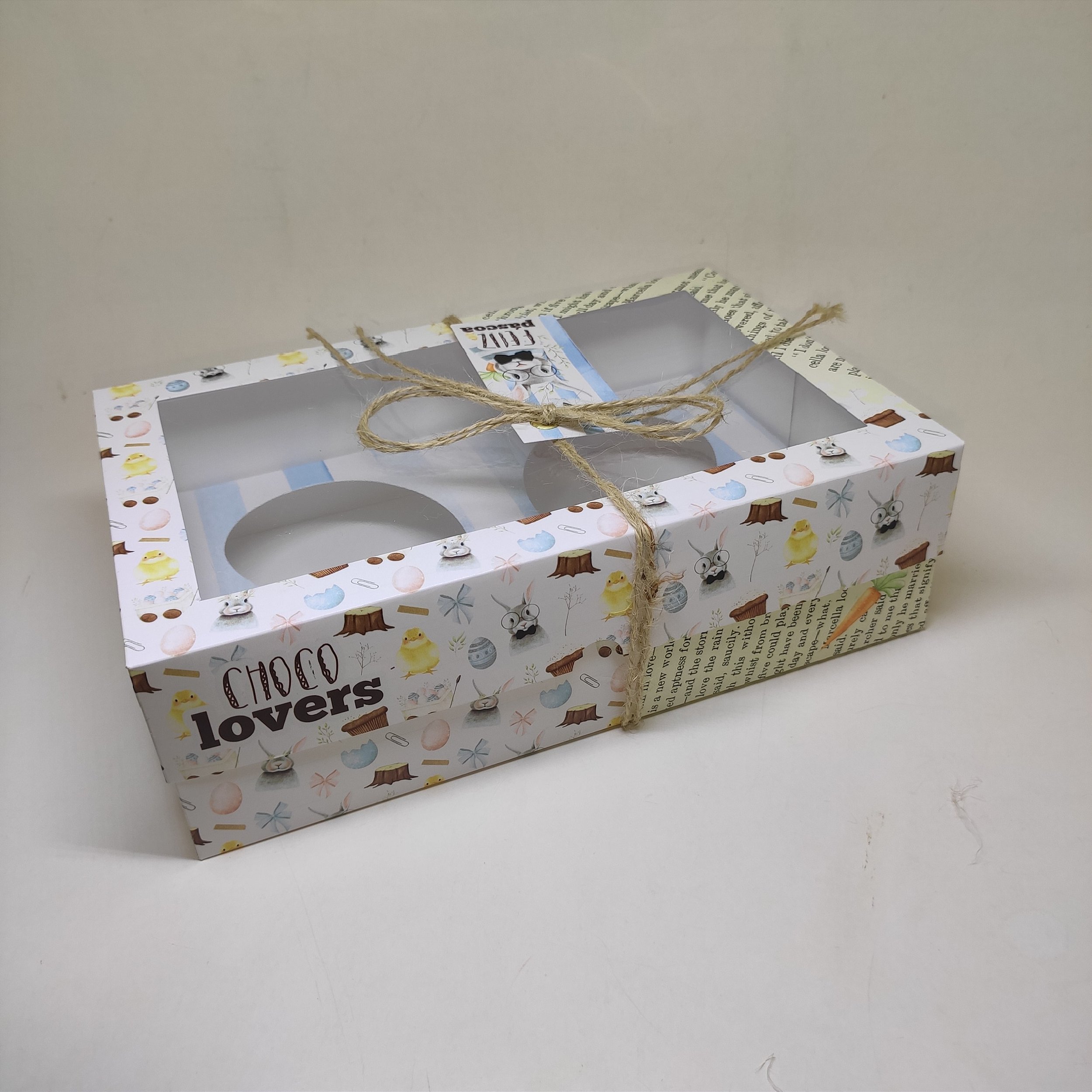 Coleção Pascoa > Pacote com 10 Unidades com todos os itens Igual a foto. >Medidas 24x16x7cm de Altura >Caixa Para 2 Ovos de Colher 250g ou 150g >Tampa Visor >Forma Indicada para esta caixa é BWB 824 ou BWB 49 ou tamanho similar >Como colocar meu logo. Escolha a opção com meu logo impresso. Envie seu logo para o email greenapplebox@outlook.com. informe onde sera colocado seu logo. Enviamos a imagem com seu logo colocado para ser aprovado. O prazo de entrega calcula pelo fica maior quando escolhe colocar seu logo e ja incluiu o tempo de montagem da arte. aprovação fabricação e envio. A cor pode variar da tela para o impresso e entre os pedidos.