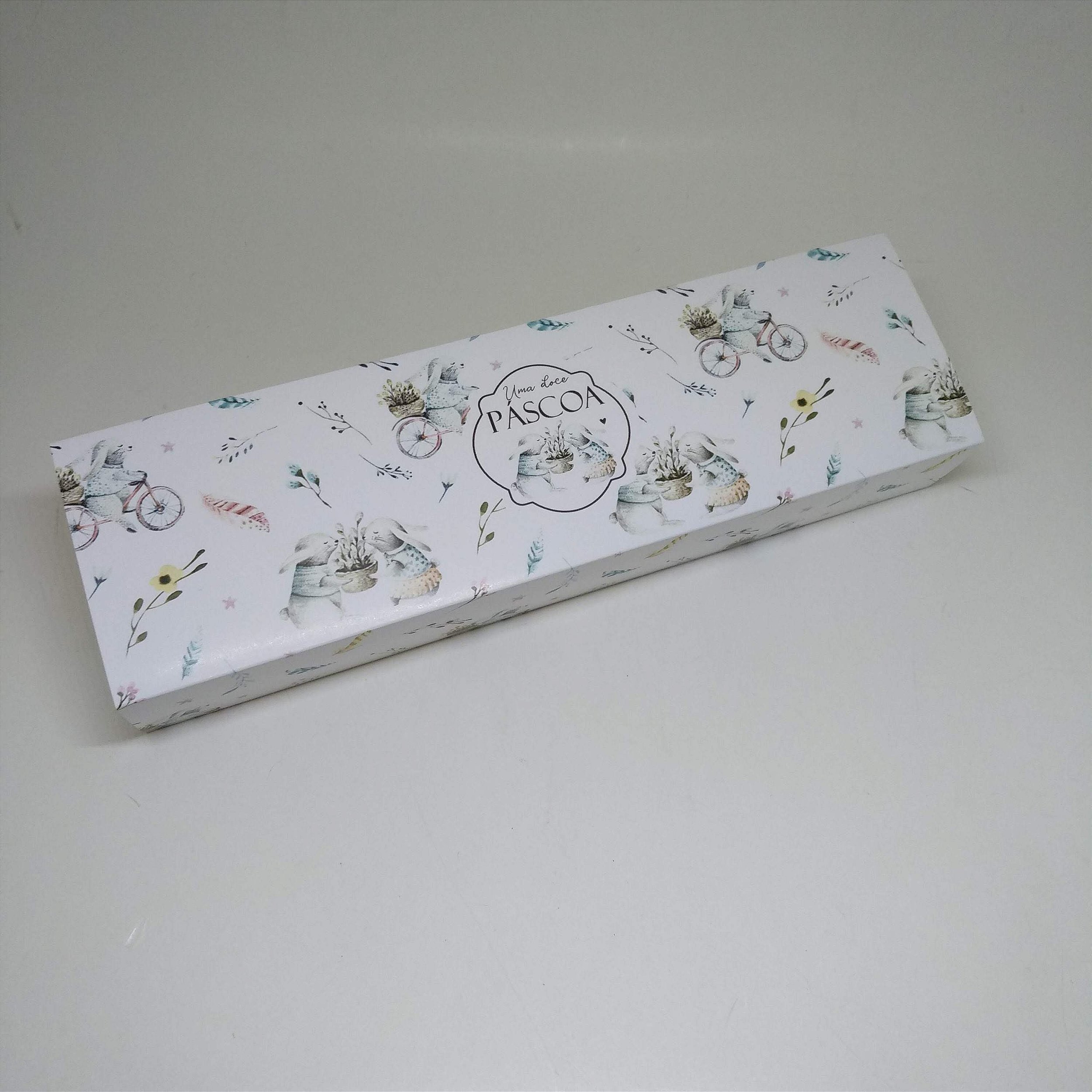 Coleção Pascoa > Pacote com 10 Unidades com todos os itens Igual a foto. >Medidas Externas 26x7.5x4cm de Altura - Medidas Internas 23x4.5x4cm de Altura >Caixa Para 6 Doces de 3.5cm por 3.5cm. Brigadeiro. Trufa. Carolinas. Beijinho. Bicho de pé. Brigadeiro Gourmet. Casadinho. Camafeu. >Tampa Gaveta Cartão >Como colocar meu logo. Escolha a opção com meu logo impresso. Envie seu logo para o email greenapplebox@outlook.com. informe onde sera colocado seu logo. Enviamos a imagem com seu logo colocado para ser aprovado. O prazo de entrega calcula pelo fica maior quando escolhe colocar seu logo e ja incluiu o tempo de montagem da arte. aprovação fabricação e envio. A cor pode variar da tela para o impresso e entre os pedidos.