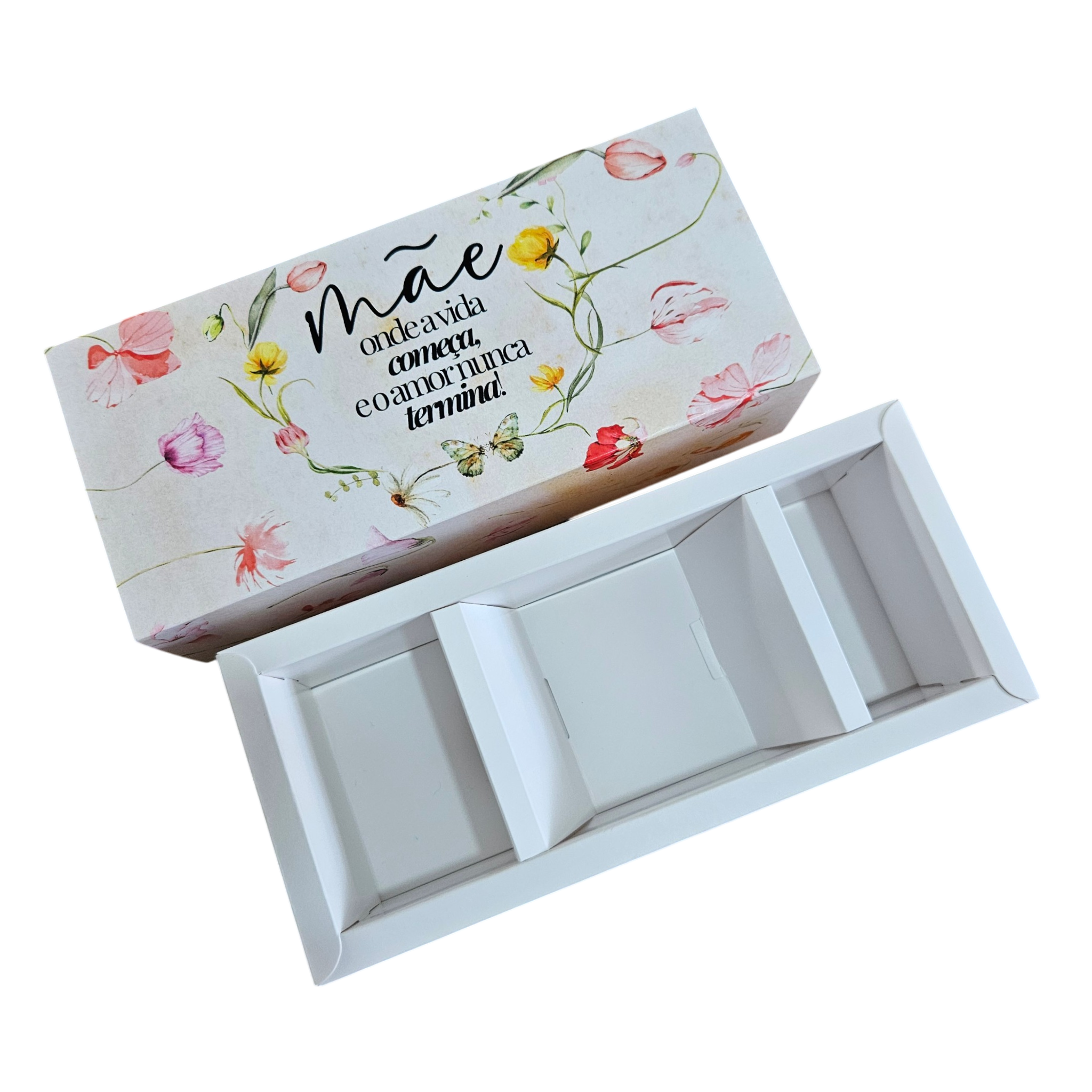 Coleção dia das Mães > Pacote com 10 Unidades com todos os itens Igual a foto. >Medidas Externas 20,5x9x5,5cm Medidas Internas - 18,5x7x5,5 cm com berço para 3 frascos >Tampa Gaveta Cartão >Forma Indicada para esta caixa é BWB 9664 ou tamanho similar >Como colocar meu logo. Escolha a opção com meu logo impresso. Envie seu logo para o email greenapplebox@outlook.com. informe onde sera colocado seu logo. Enviamos a imagem com seu logo colocado para ser aprovado. O prazo de entrega calcula pelo fica maior quando escolhe colocar seu logo e ja incluiu o tempo de montagem da arte. aprovação fabricação e envio. A cor pode variar da tela para o impresso e entre os pedidos.